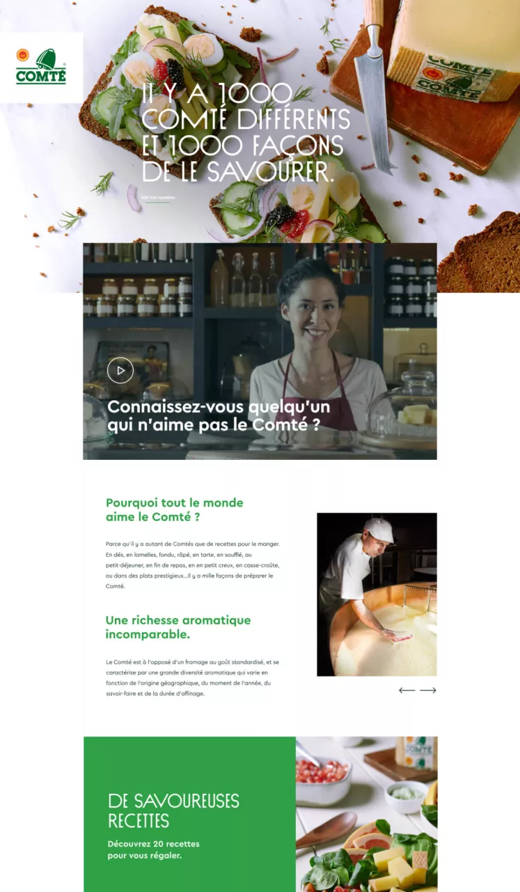 Un premier travail de conception qui a consisté à scinder l'ancien site Comté en deux sites distincts pour mieux s'adresser aux différents publics : Un premier site B2C où les consommateurs peuvent retrouver des recettes, des idées de séjour, suivre l'actualité de leur fromage préféré et s'intéresser à son histoire et à sa méthode de fabrication.