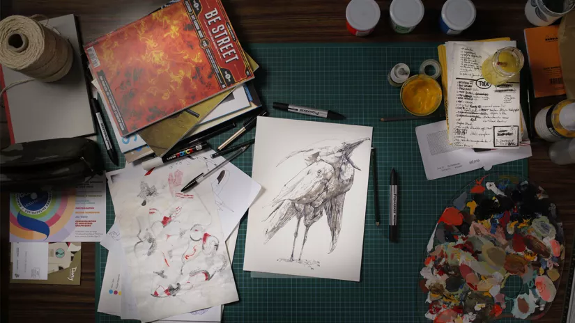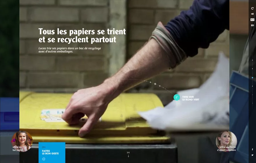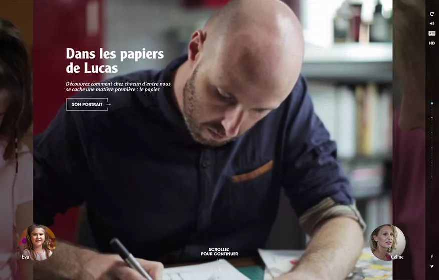 Nous avons choisi d’axer le dispositif autour de trois personnages auquel chacun est susceptible de s’identifier : une petite fille avec ses cahiers, un trentenaire urbain avec ses dessins ou encore un artisan avec sa paperasse.