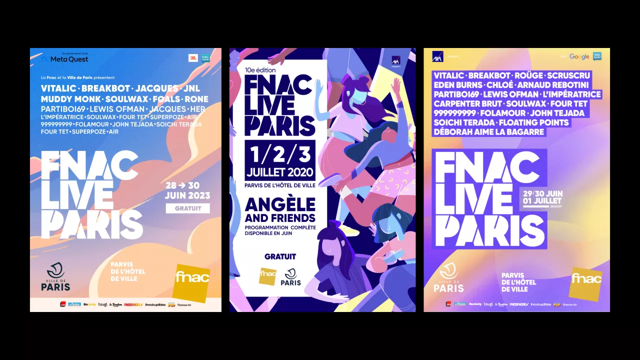 Depuis 2017, nous avons pu explorer différents styles graphiques (illustration, 3D, formes...) tout en s'inscrivant dans une identité cohérente, pop et estivale.