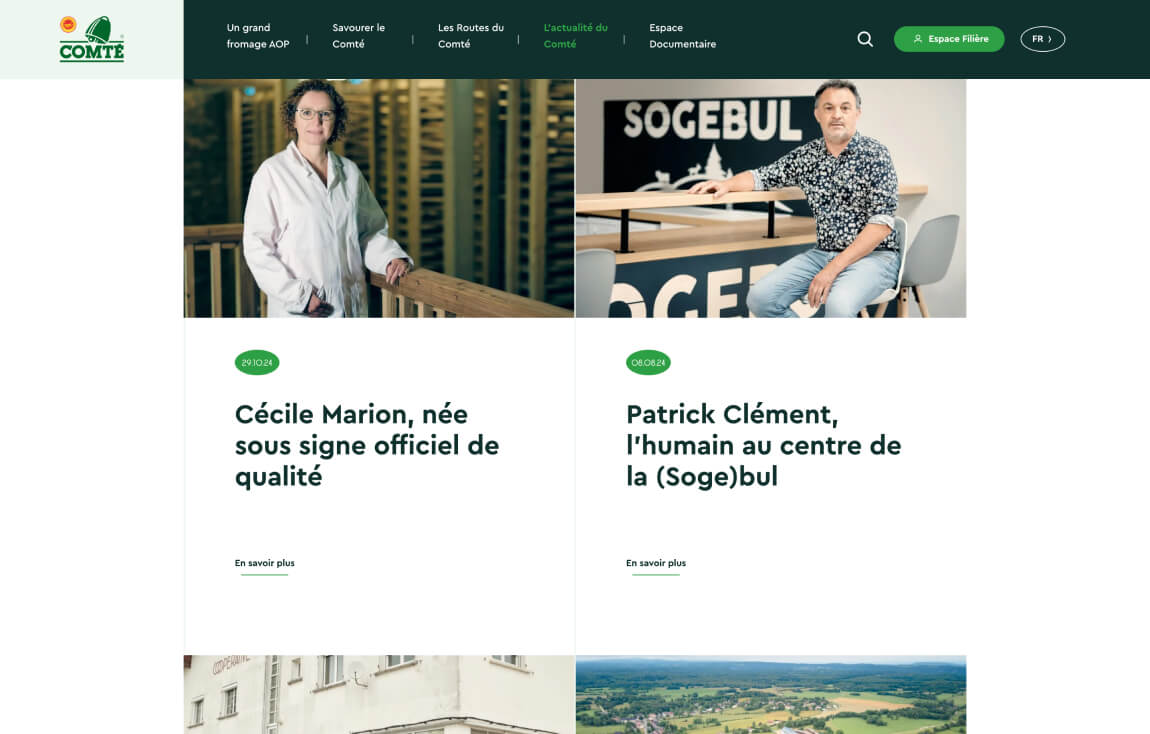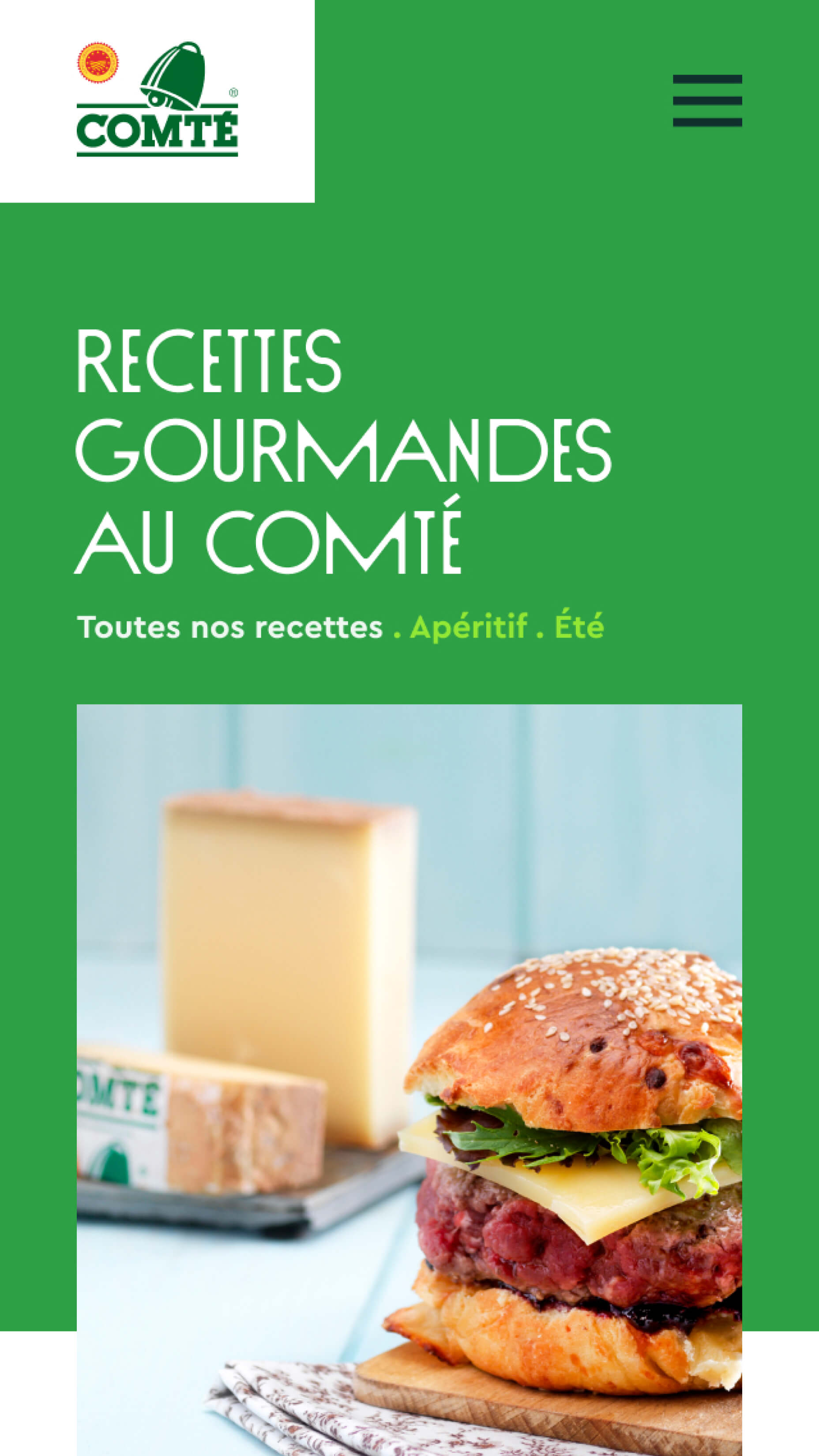 Un premier travail de conception qui a consisté à scinder l'ancien site Comté en deux sites distincts pour mieux s'adresser aux différents publics : Un premier site B2C où les consommateurs peuvent retrouver des recettes, des idées de séjour, suivre l'actualité de leur fromage préféré et s'intéresser à son histoire et à sa méthode de fabrication.