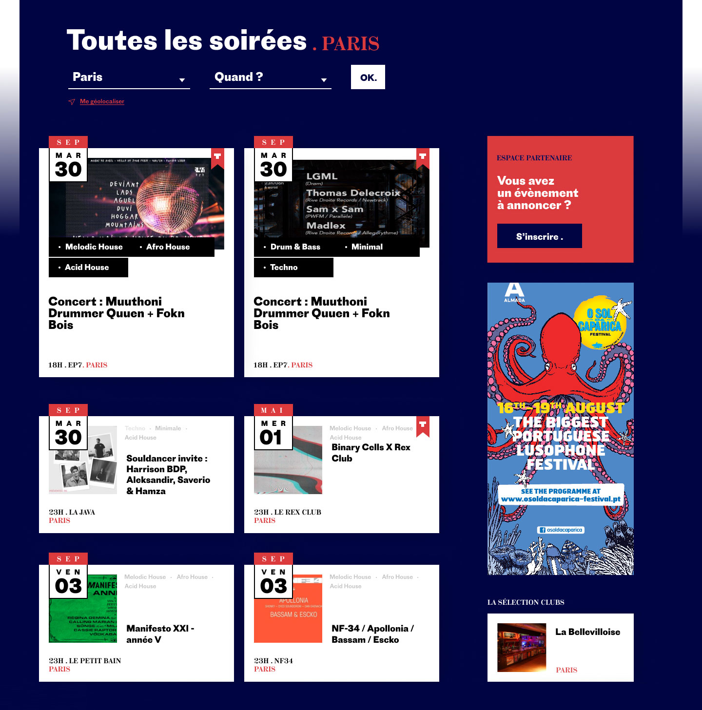 Après plusieurs workshops UX avec les différentes équipes, l'architecture du site a été retravaillée pour se recentrer autour de 3 grands axes : l'éditorial, l'agenda et la boutique.